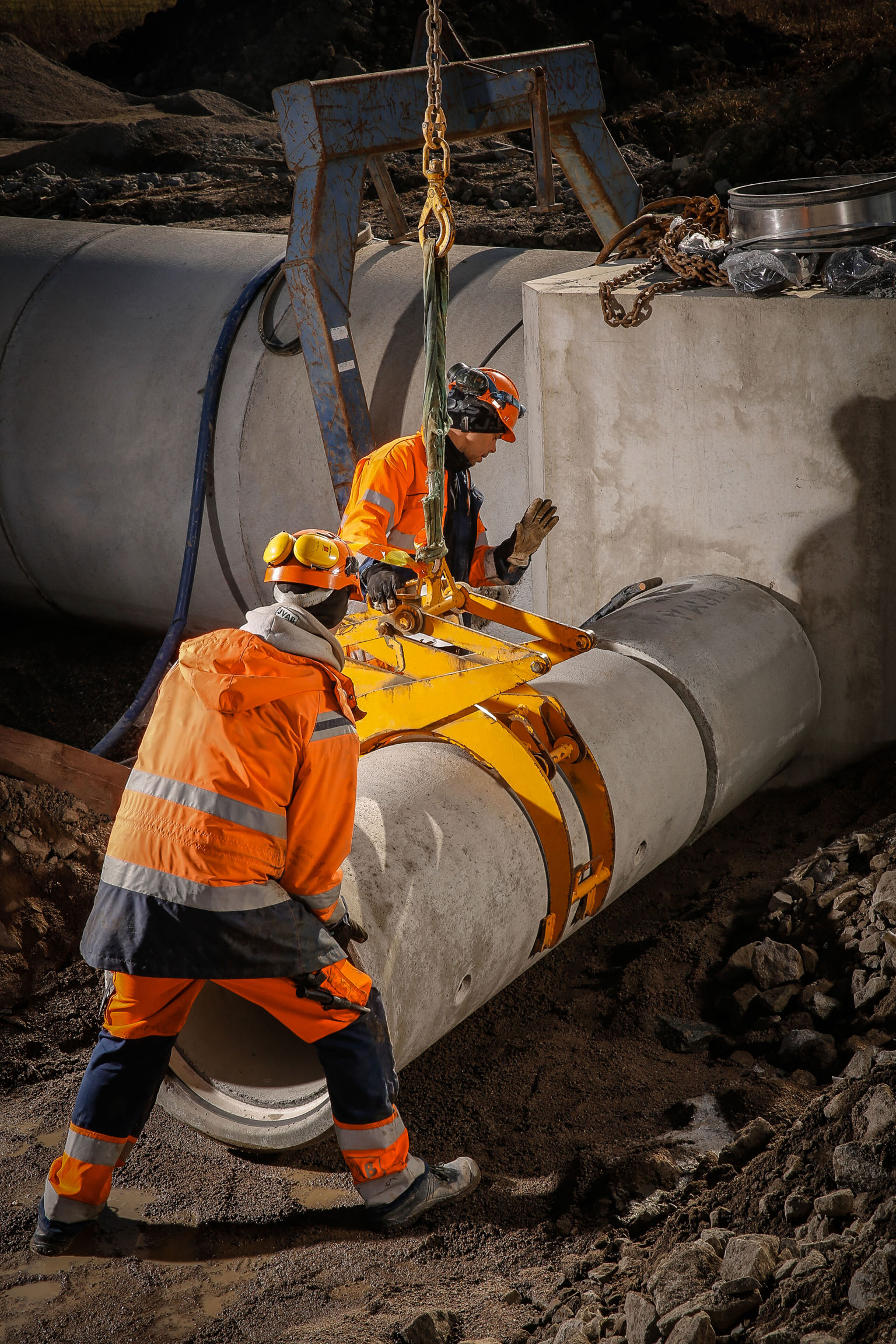 Lyftsaxen griper tag om rörets utsida och underlättar vid dockning av rörspets i anslutande rör och ger en smidig och effektiv anläggning.